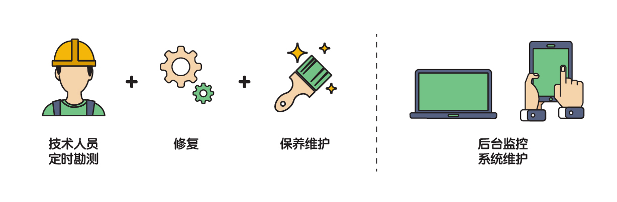 设备安装后公司将派专业工程维护人员定时勘察,如发现设备有破坏或质量问题会及时修复,同时做好设备及投影膜的保养与清洁。 此外,设备的后台系统能实时发现任何一台设备的故障问题,后台得到提示后将及时派专员前去现场维护。